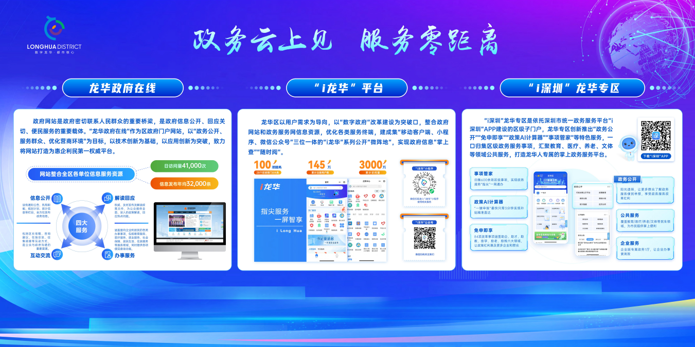 突破時間和空間的限制,將數(shù)字化能力融入到政務實踐的場景中。龍華區(qū)政務公開不斷加強“雙語多端”政府網站與新媒體平臺聯(lián)動建設,從信息發(fā)布、解讀回應、互動交流、辦事服務等方面著力,構建了以政府網站為主、i龍華、i深圳龍華區(qū)級門戶等政務新媒體渠道為支撐的“一網多端”公開平臺,實現(xiàn)政府信息“網上查”“掌上閱”。在全市率先推行的“免申即享”與“政策AI計算器”,實現(xiàn)政策直達快享。目前共推出四批84項“免申即享”事項清單,兌現(xiàn)政策紅利14.18億元,惠及52萬企業(yè)和群眾,實現(xiàn)四個“全省之最”(補貼金額全省最大、事項數(shù)量全省最多、事項覆蓋范圍全省最廣、惠及群眾全省最眾)。