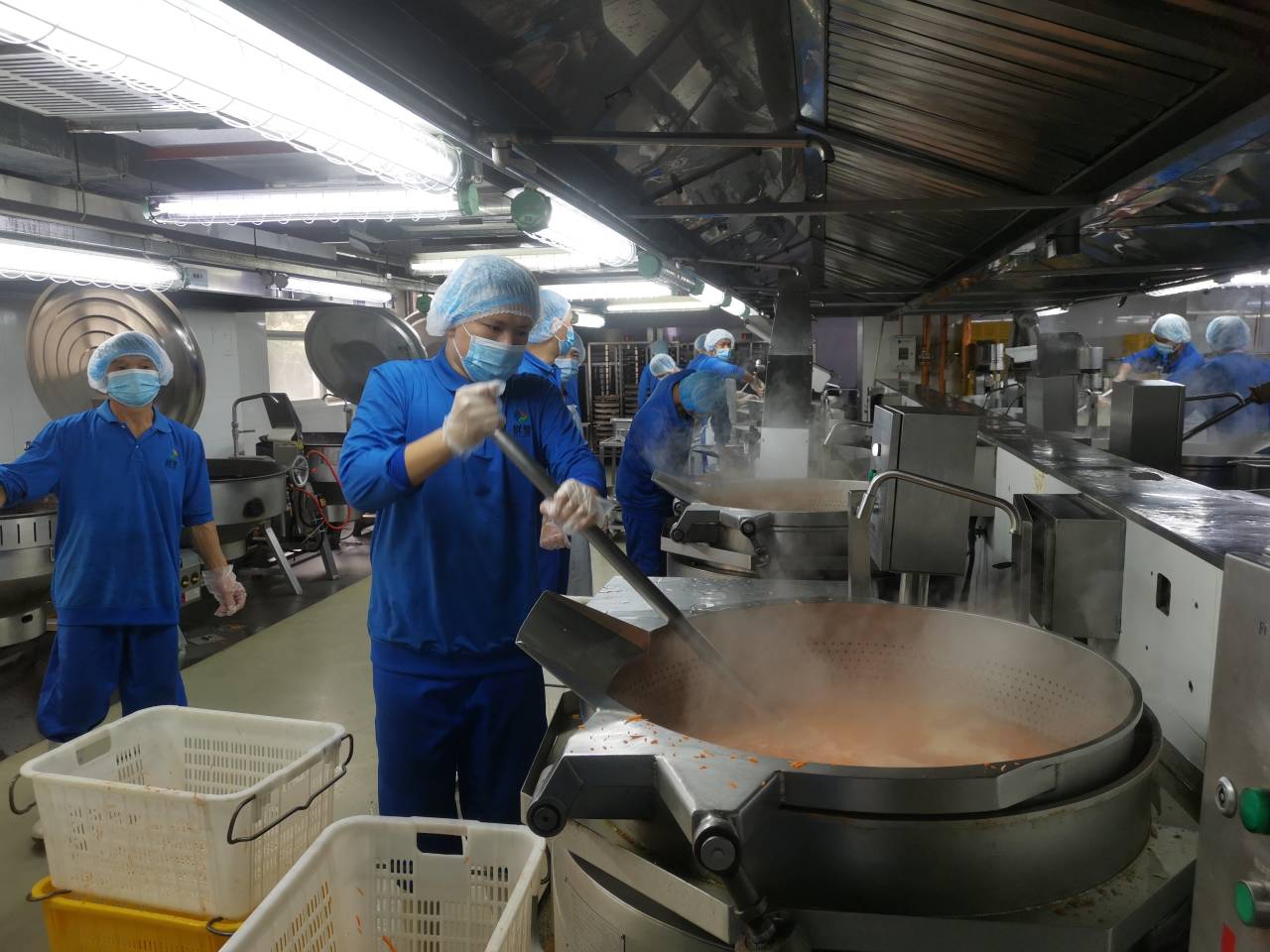 隨后,執(zhí)法人員一行依次檢查食品粗加工間、烹飪間、配餐間等?!案骷庸?chǎng)所按照原料進(jìn)入、原料加工、半成品加工、成品供應(yīng)的流程合理布局,并防止食品在存放、運(yùn)輸、操作過程中產(chǎn)生交叉污染。”據(jù)介紹,企業(yè)在成品分餐裝箱后,使用專車運(yùn)輸,上物流鎖并用封條封裝,有效保證了學(xué)生餐在運(yùn)輸過程中的安全。