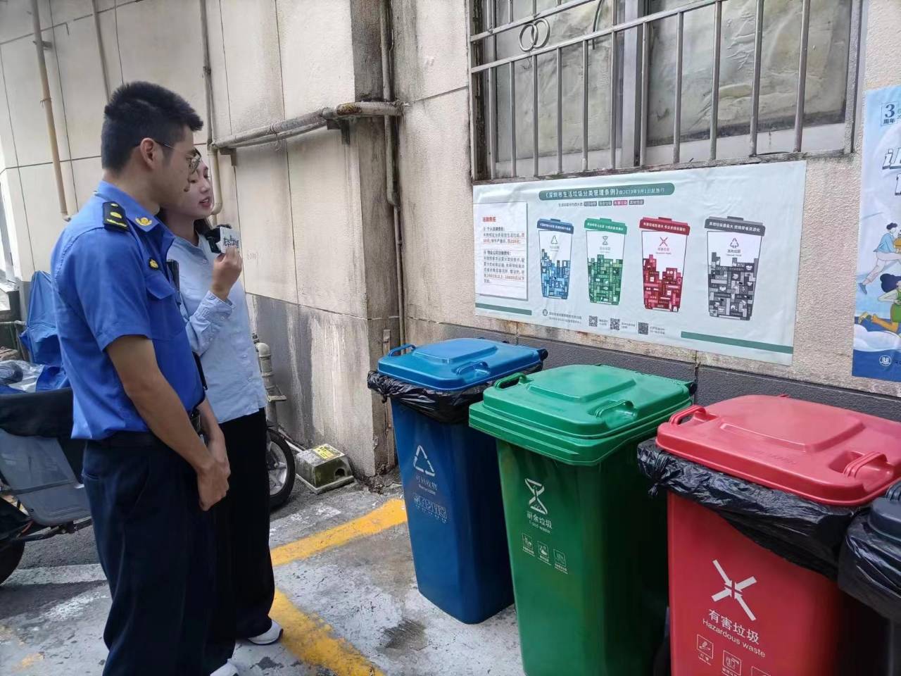 執(zhí)法人員隨即把關(guān)于新《條例》的宣傳小冊子遞給經(jīng)理閱讀,并查看該市場的垃圾分類臺賬,發(fā)現(xiàn)市場管理方有對員工進行日常宣傳和培訓(xùn),同時將收集到的垃圾按月份登記清晰。