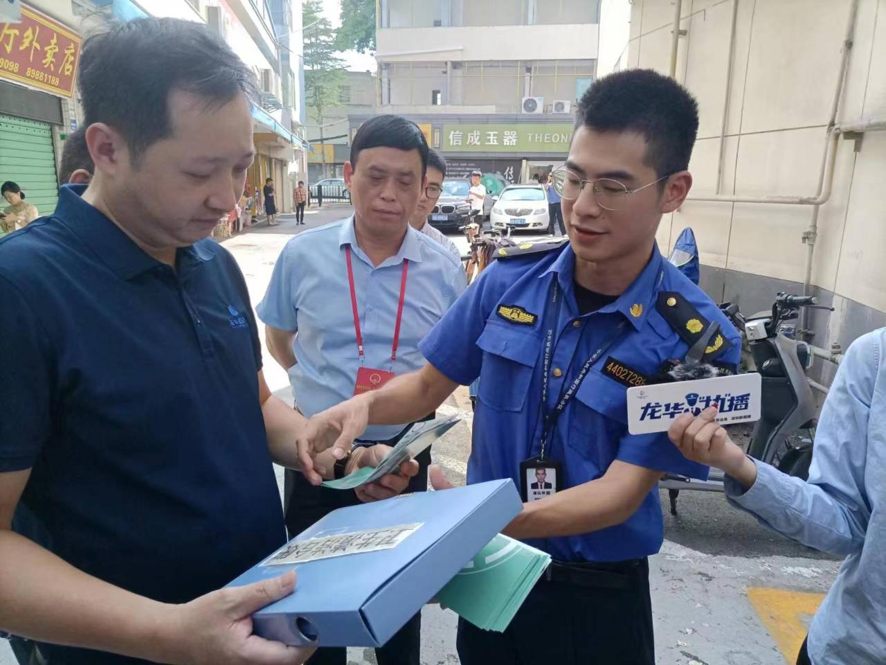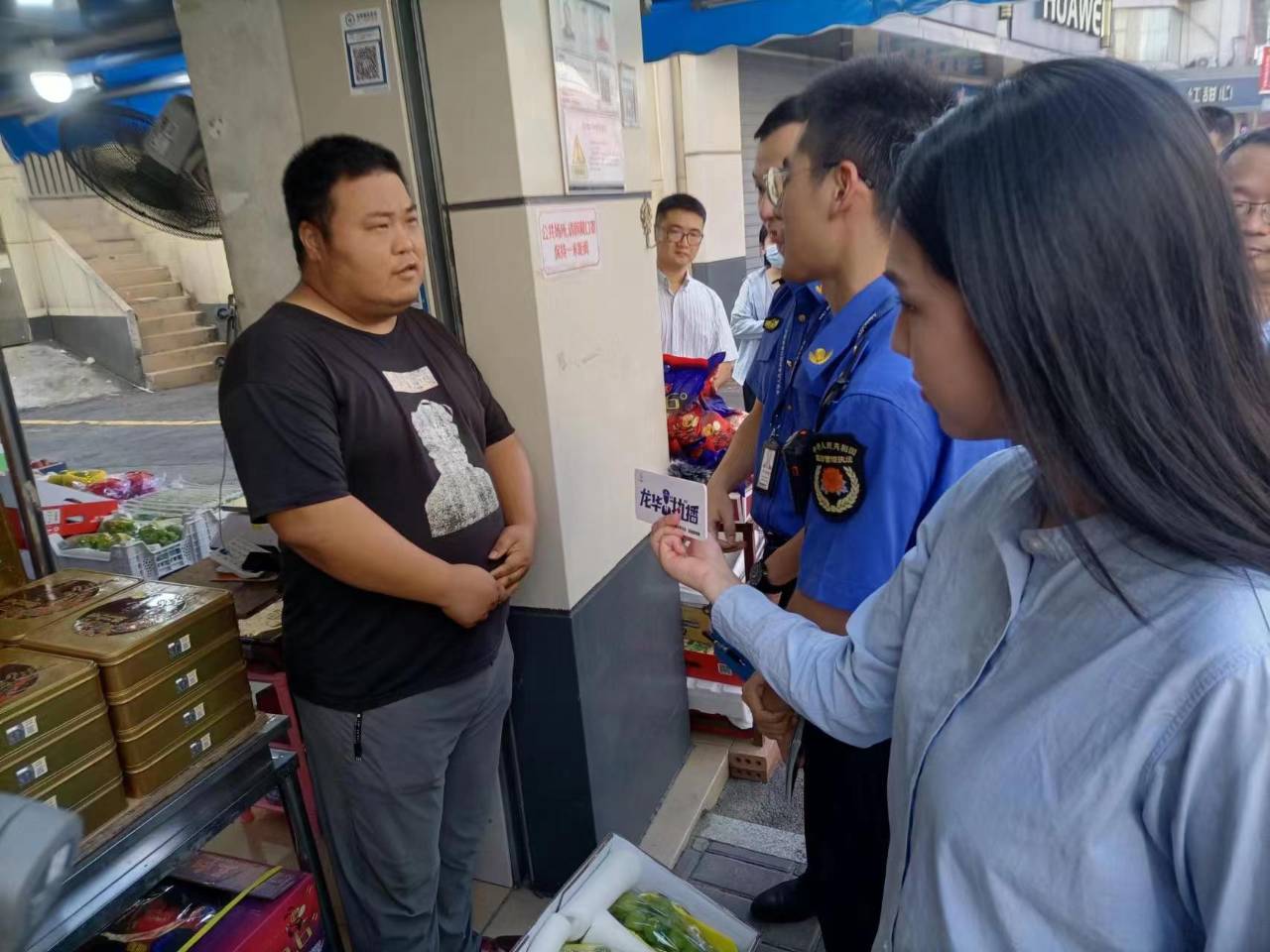 為了進一步做好強化市容環(huán)境整治工作,提高城市管理水平和社會文明程度,增強市民主動維護市容環(huán)境秩序意識,9月26日下午,第十五期《龍華“執(zhí)”播》欄目由觀瀾街道辦事處的執(zhí)法人員潘鈺坤、林澤鑫帶我們走進觀瀾市場,根據(jù)新修訂的《深圳經(jīng)濟特區(qū)市容和環(huán)境衛(wèi)生管理條例》(以下簡稱《條例》),依照職責(zé)來對集貿(mào)市場開展一次專項整治行動,深圳市特邀行政執(zhí)法監(jiān)督員蔣軍輝、諶秋林以及區(qū)人大代表廖峰全程參與此次活動。