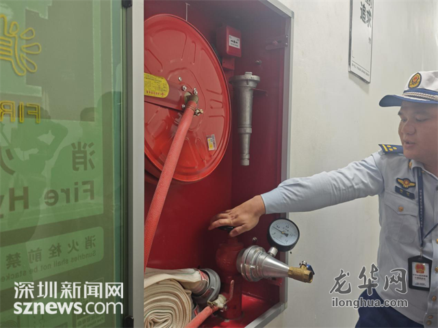 樓道間,執(zhí)法人員講解了報警器的原理和作用,并檢查了室內消火栓和滅火器。“室內消火栓一般包括消防給水管道及消火栓接口、消防水帶及消防水槍。”執(zhí)法人員查看了消火栓箱,沒有損壞、銹蝕、被遮擋,水帶、水槍、接口等組件沒有缺失并保持完好有效。此外,執(zhí)法人員抽查了室內消火栓水壓,靜壓不低于0.10MPa,數值正常。