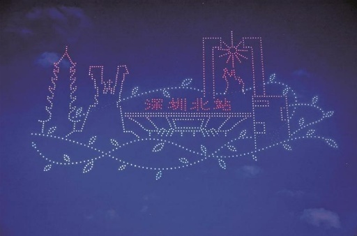 深圳北站主題無人機表演。