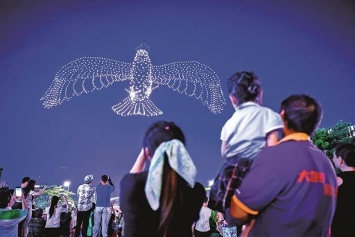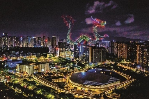 1500余架無人機上演史上最大面積單畫3D“飛龍在天”,市民們駐足仰望,仿佛置身于神奇的幻境中。